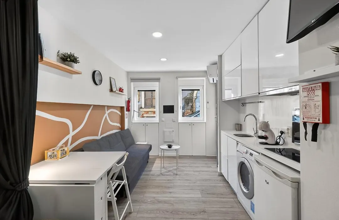 このアパートには台所が備わります Minimalist Studio In Central Lisbonはピコアス地下鉄駅からわずか0.6キロメートルほどのところにあります。